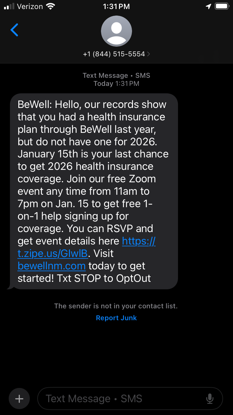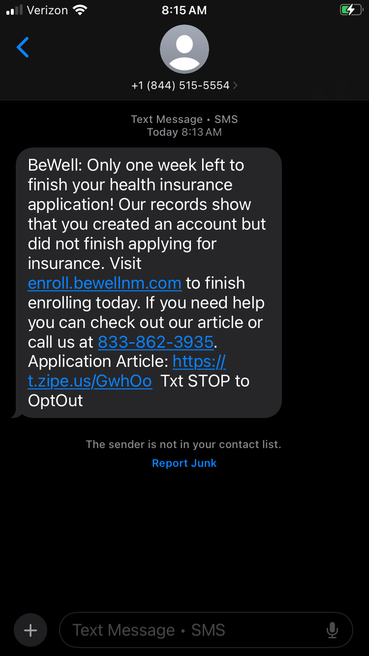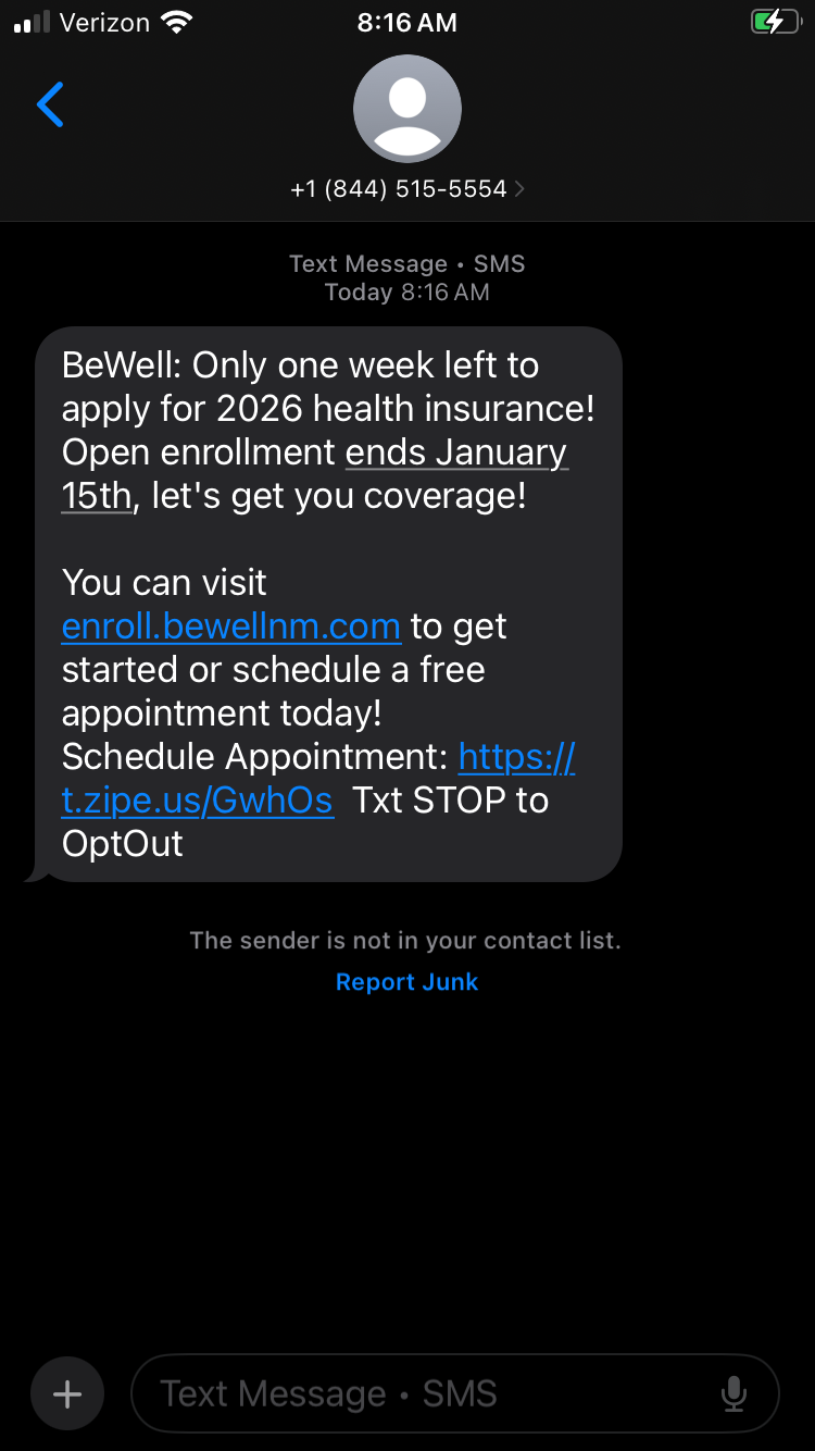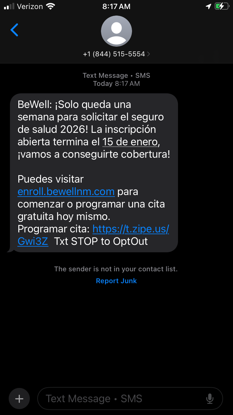 To protect yourself, remember: BeWell will only email you from info@bewellnm.com or noreply@bewellnm.com and only text you from 844-515-5554. If a message doesn’t come from us, it isn’t BeWell.