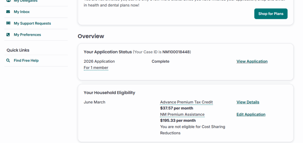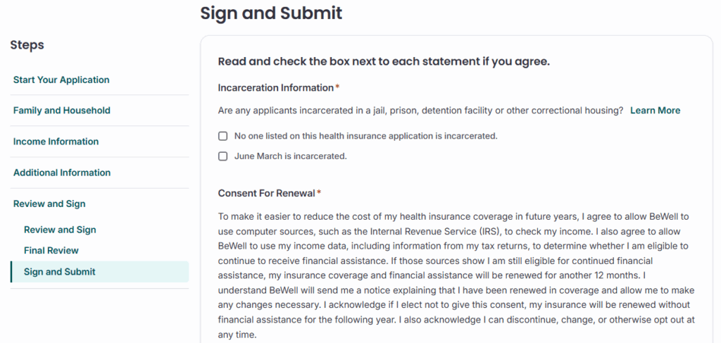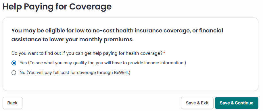 - Latest BeWell health coverage application did not give us permission to automatically check for subsidies.