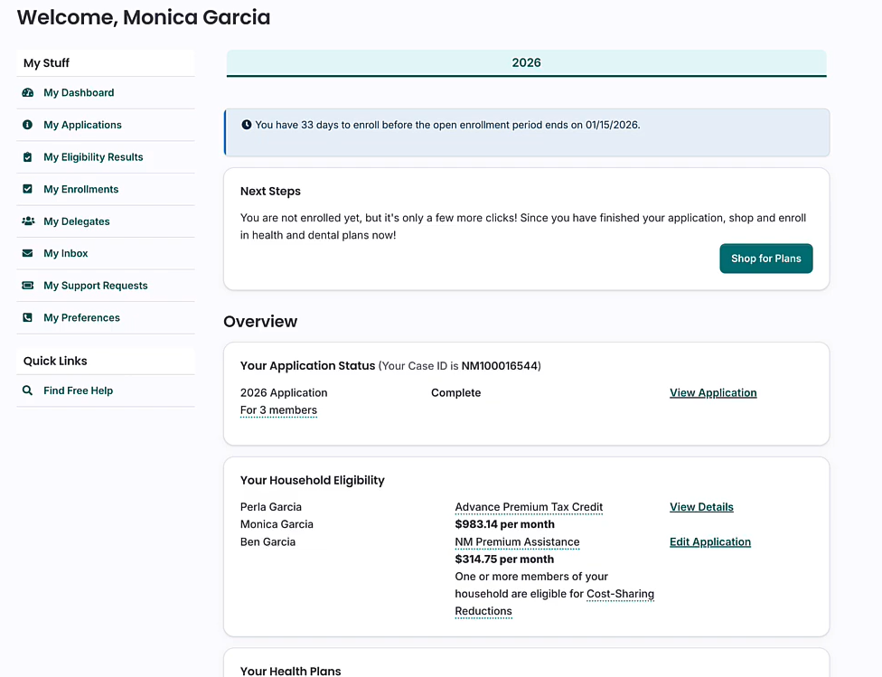 From your Dashboard, click the “Find Free Help” button on the left side of the page, in the Quick Links section. On the left you will see certified assisters and brokers, and on the right, you will see Enrollment Counselors.