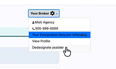 You can always remove your assister by going up to the “Your Broker” settings drop down on your Dashboard and selecting “Dedesignate assister”.