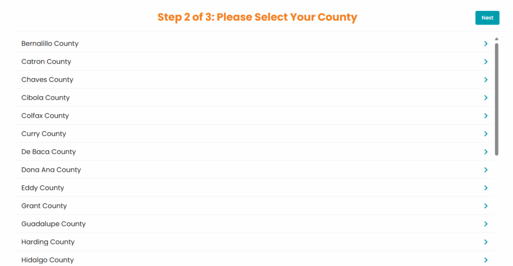 On our appointments webpage you can begin by selecting your preferred language or cultural preference. Next, you will be asked your county. If you came here through the portal, this is where you will start.