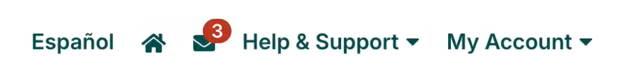 To switch your account’s language to Spanish, click Espanol. To return to your dashboard, click the Home icon and to easily access important notices, click the Secure Inbox icon. Open the Help and Support drop down to connect with free help or explore our Frequently Asked Questions. Open the My Account drop down to access account settings like resetting your password or to log out.